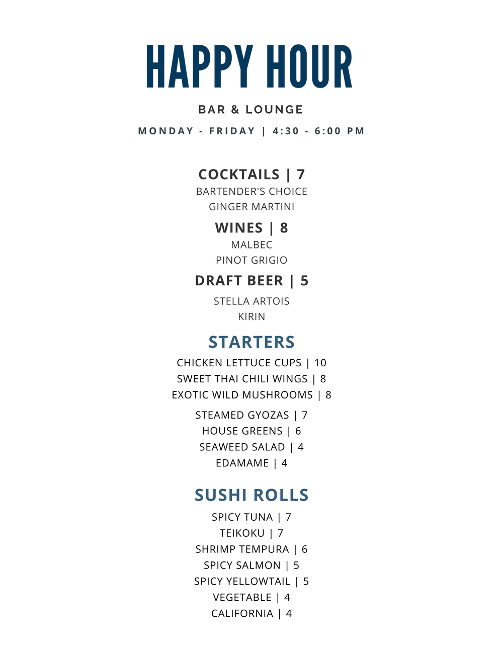 Amura Japanese Restaurant Reverse Happy Hour Is Here Join Us From 9pm Close Every Night And Enjoy These Specials Only Available At Our Bar Sushi Bar And Patio Only Here